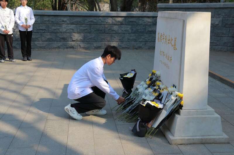 在北京陶然亭公园高君宇烈士墓前,校学生会举办“清明祭英烈,青年铸担当”主题分享会。同学们敬献清菊、鞠躬致意,深切缅怀这位年仅29岁便燃尽生命的革命先驱。